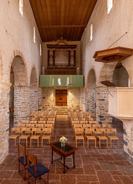 The castle church, located just next to the castle, is a perfect example of an early medieval proprietary church. The current, early Romanesque building has been altered astoundingly little. Around 1466, the chronicler Elogius Kiburger asserted that the building had served an Augustinian monastery, a claim possibly supported by the existence of the crypt, but also the magnificent wall paintings and their subjects. In 1228 however, it was already simply referred to as a parish church. It continued to fulfil this function till the construction of the church in the village in 1907.