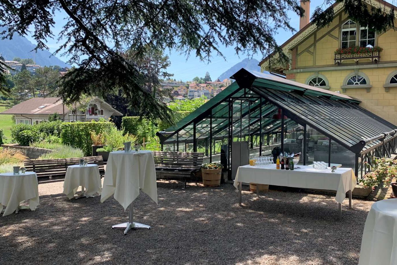 - Bei weniger als 20 Gäste ist ein Apéro im Schloss-Café möglich (Öffnungszeiten beachten, mit reduziertem Mindestumsatz)