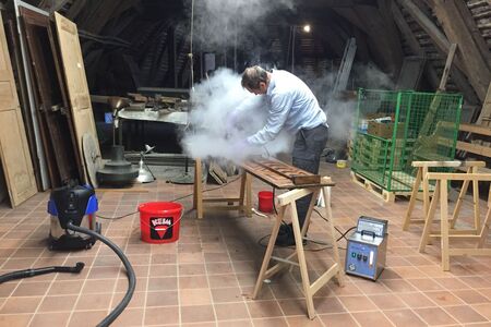 Der Restaurator Ulli Freyer reinigt Täferteile