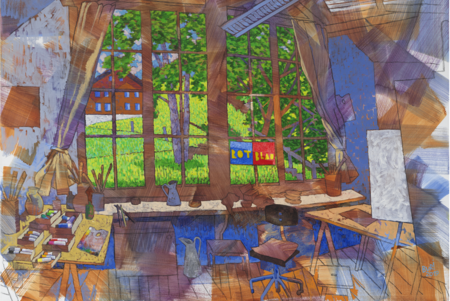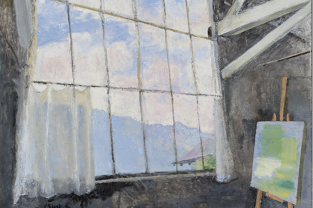 Victor Surbek, Das Atelier (I.), La grande fenêtre (Ausschnitt), 80 × 100 cm, Öl auf Leinwand, Stiftung Schloss Spiez, Schenkung Surbek-Frey