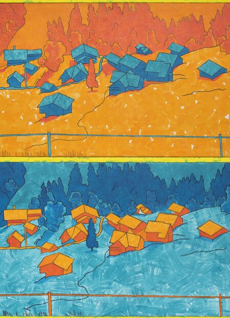 Gouache auf Hartfaserplatte, 47 × 61 cm