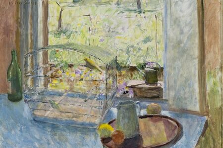 Marguerite Frey-Surbek, Fenster mit Vogelkäfig (Ausschnitt), 1972, 75 x 102.4 cm, Öl auf Leinwand, Stiftung Schloss Spiez, Schenkung Surbek-Frey
