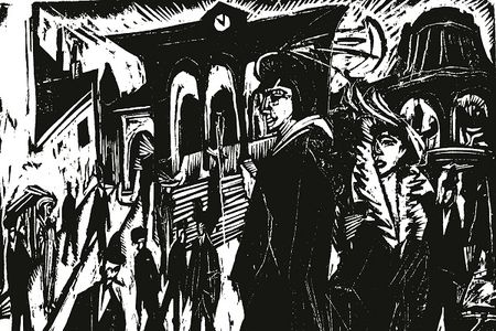 Ernst Ludwig Kirchner, Frauen am Potsdamer Platz (Ausschnitt), 1914, Holzschnitt, 51/52 x 37.5 cm,Sammlung EWK