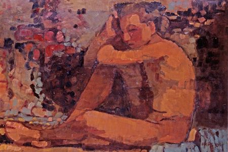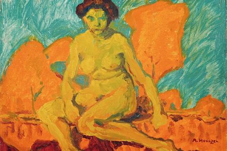 Adolf Hölzel, Weiblicher Akt (Ausschnitt), um 1912, Öl / Karton, 34,5 × 42 cm, DELTA Kunst