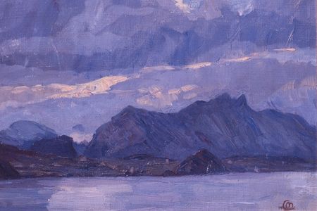 Martha Cunz, Blick auf die Stockhornkette, um 1910/11, Öl / Leinwand / Karton, 28 × 37 cm, Privatbesitz