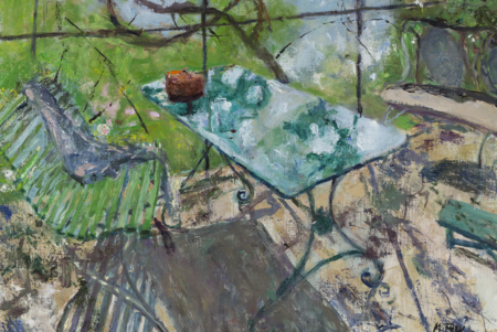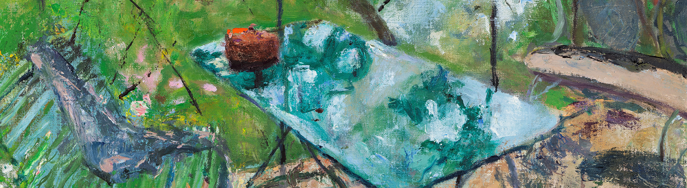 Marguerite Frey-Surbek, Terrasse Iseltwald (Ausschnitt), 1976, Öl auf Leinwand, 50 × 64 cm, Stiftung Schloss Spiez, Schenkung Surbek-Frey
