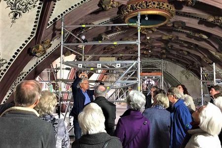 Mitgliederausflug - dem "Himmlischen Hof" ganz nah: Führung auf dem Baugerüst im Münsterchor Bern.